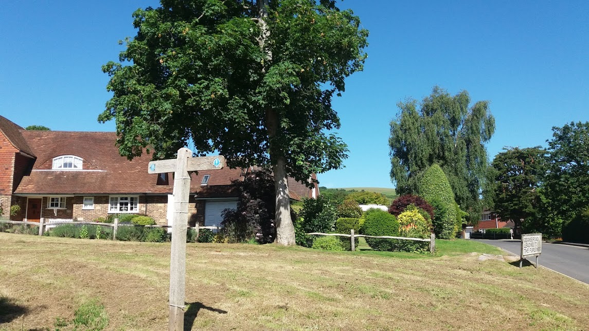 We left Alfriston, passing the Smugglers Inn and up out of the village where the track was way-marked by a sign showing we still had plenty of miles to Winchester.