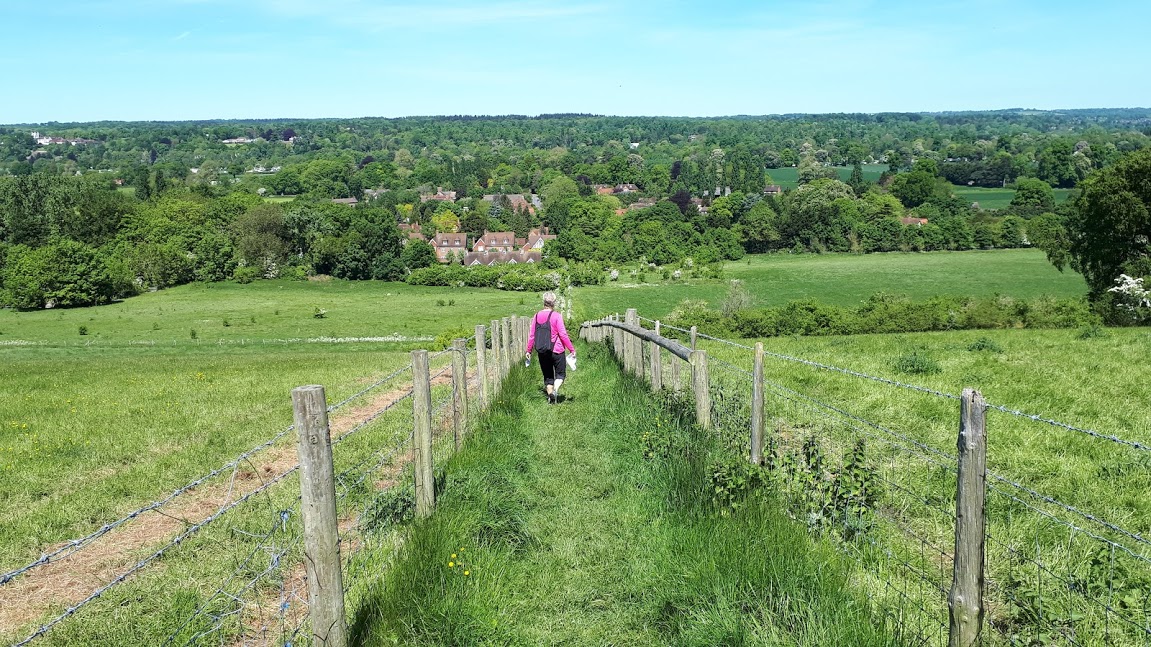 We were greeted, on the day we walked, by a large herd of docile, inquisitive young heifers and stunning clear views across the Thames Valley.