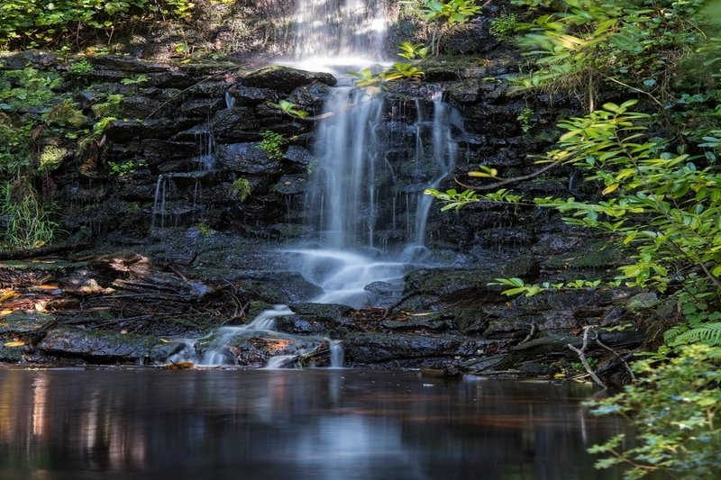 We are now in Broadmoor, no relation to the infamous Broadmoor Hospital some 28 miles away. The village is home to some enviable country cottages and the National Trust's Henman Bunkhouse that we pass by on the right. Worth stopping and reading the notice board before continuing down a broadning track where it meets a country lane. Go right and take the lane with a 'private' sign to the Wooton Estate. Fear not as this drive is also our public footpath to a real gem....... a Surrey waterfall