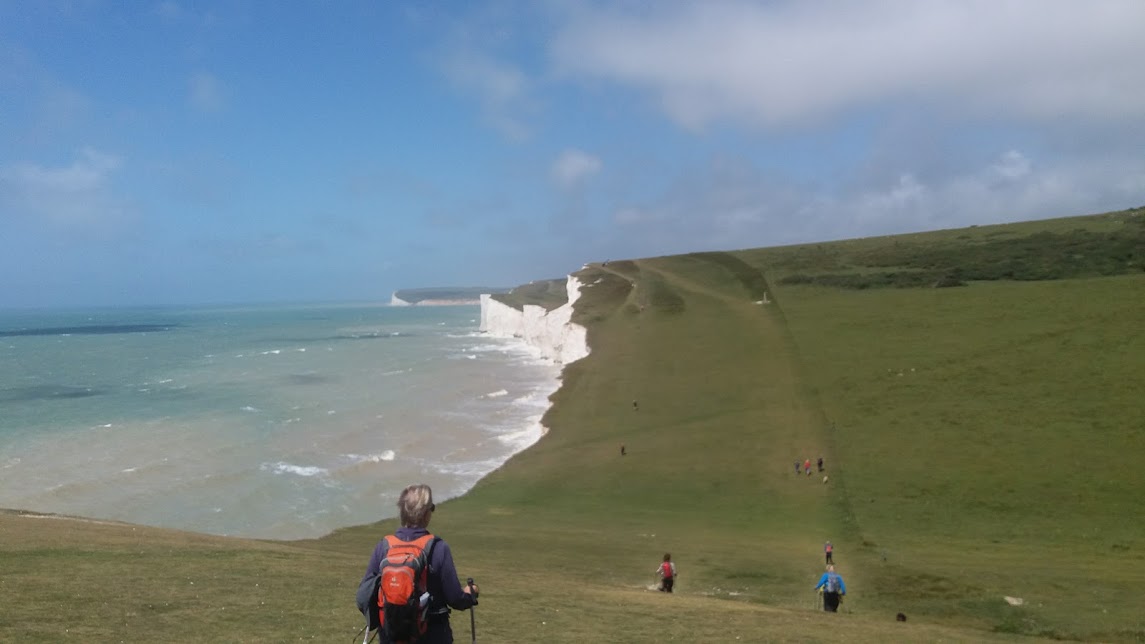We are on our way for the shortish road journey on the rather infamous A27 to our start from "The Kiosk' at Eastbourne. We notice the other side of the dual-carriageway is horrendously snarled up for miles and it transpires that one of our walkers is still sitting in this jam and misses the start today. The good, and bad news, is he manages to get back to Alfriston where he completes a 17 miles loop, catching us up at the end! This guy goes on to be one of the quicker walkers and we only see him again on the morning coach.